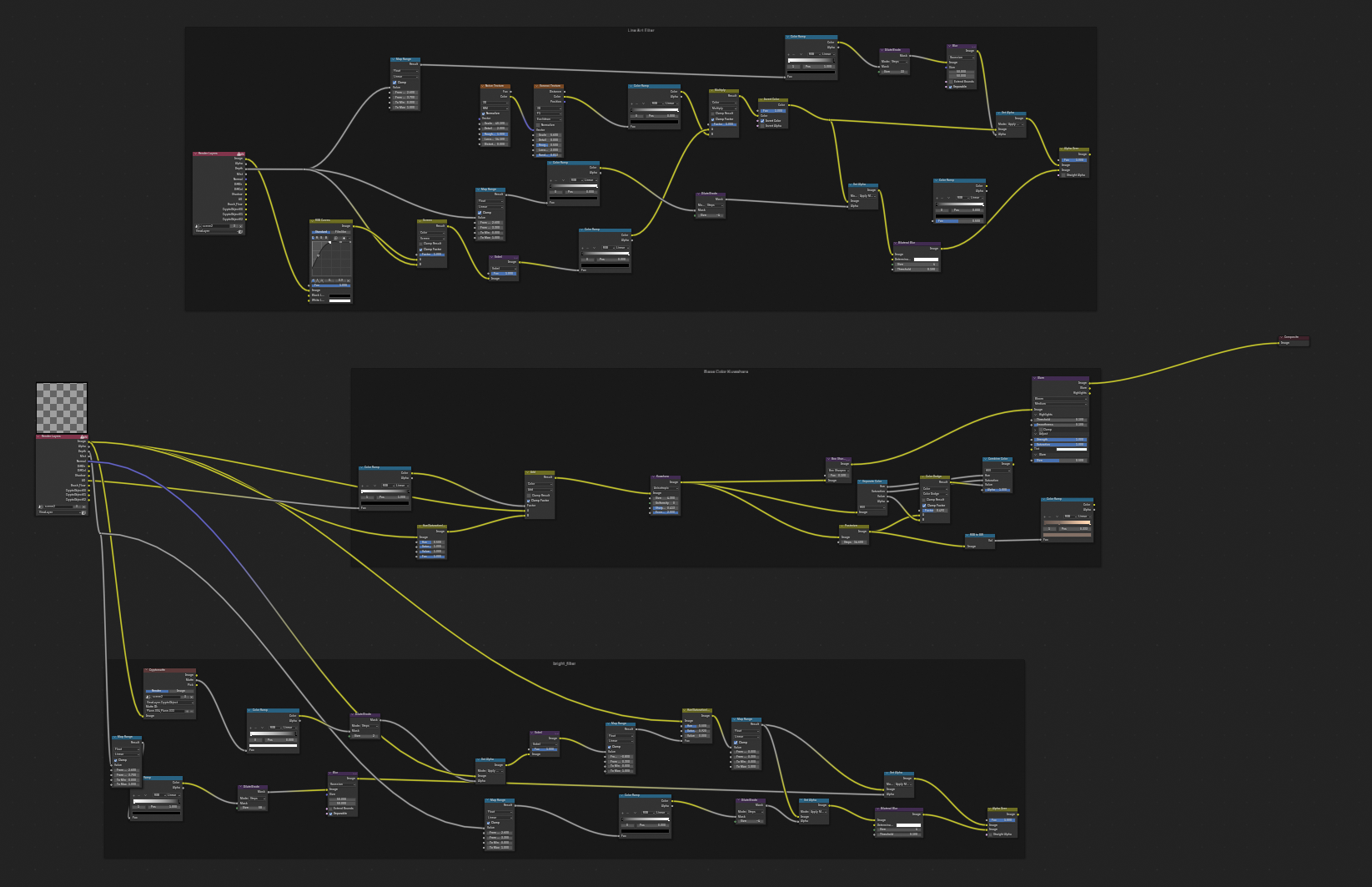 This compositor workflow consists of 3 passes, comped together in After Effects. The original backbone/train of thoughts for the render pipeline was built from t